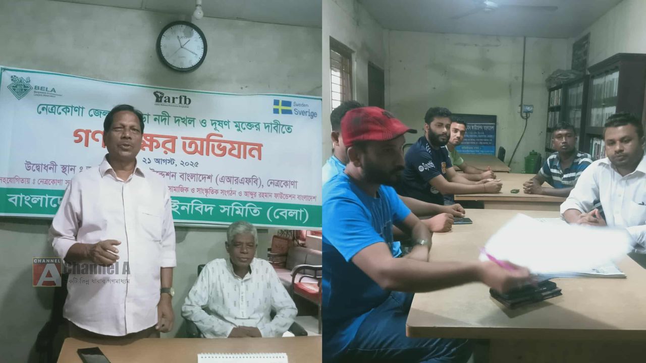 মগড়া নদী দখল-দূষণ মুক্ত রাখার দাবিতে নেত্রকোণায় গণস্বাক্ষর অভিযান