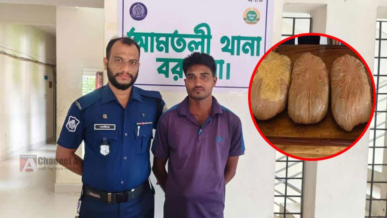 জানাগেছে, আমতলী উপজেলার হলদিয়া ইউনিয়নের কাঠালিয়া গ্রামের মোস্তফা মাদবরের ছেলে আমিরুল মাদবর দীর্ঘদিন ধরে এলাকায় মাদক বিক্রি করে আসছে। বৃহস্পতিবার সকালে গোপন সংসাদের ভিত্তিতে আমতলী থানা পুলিশ গাজীপুর বন্দর মাধ্যমিক বিদ্যালয় সংলগ্ন এলাকায় অভিযান চালিয়ে তাকে গ্রেপ্তার করে। এ সময় তার শরীর তল্লাশী করে তিন কেজি গাঁজা উদ্ধার করে। এ ঘটনায় আমতলী থানায় তার বিরুদ্ধে মাদকদ্রব্য নিয়ন্ত্রণ আইনে মামলা হয়েছে। পুলিশ বৃহস্পতিবার বিকেলে তাকে আমতলী সিনিয়র জুডিসিয়াল ম্যাজিস্ট্রেট আদালতে সোপর্দ করেছেন। আদালতের বিচারক মোঃ ইফতি হাসান ইমরান তাকে জেল হাজতে পাঠানোর নির্দেশ দিয়েছেন।
