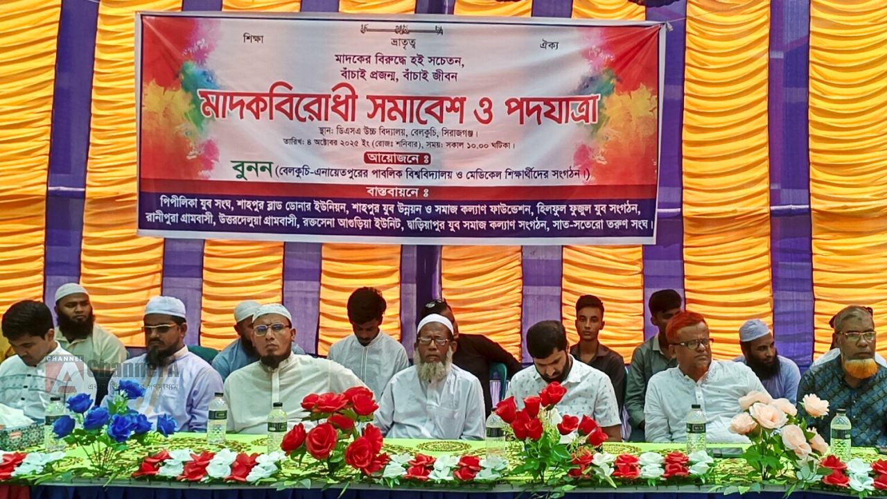 “মাদকের বিরুদ্ধে হই সচেতন, বাঁচাই প্রজন্ম, বাঁচাই জীবন”— এই প্রতিপাদ্যকে সামনে রেখে সিরাজগঞ্জের বেলকুচি উপজেলায় বর্ণাঢ্য মাদকবিরোধী সমাবেশ ও পদযাত্রা অনুষ্ঠিত হয়েছে।