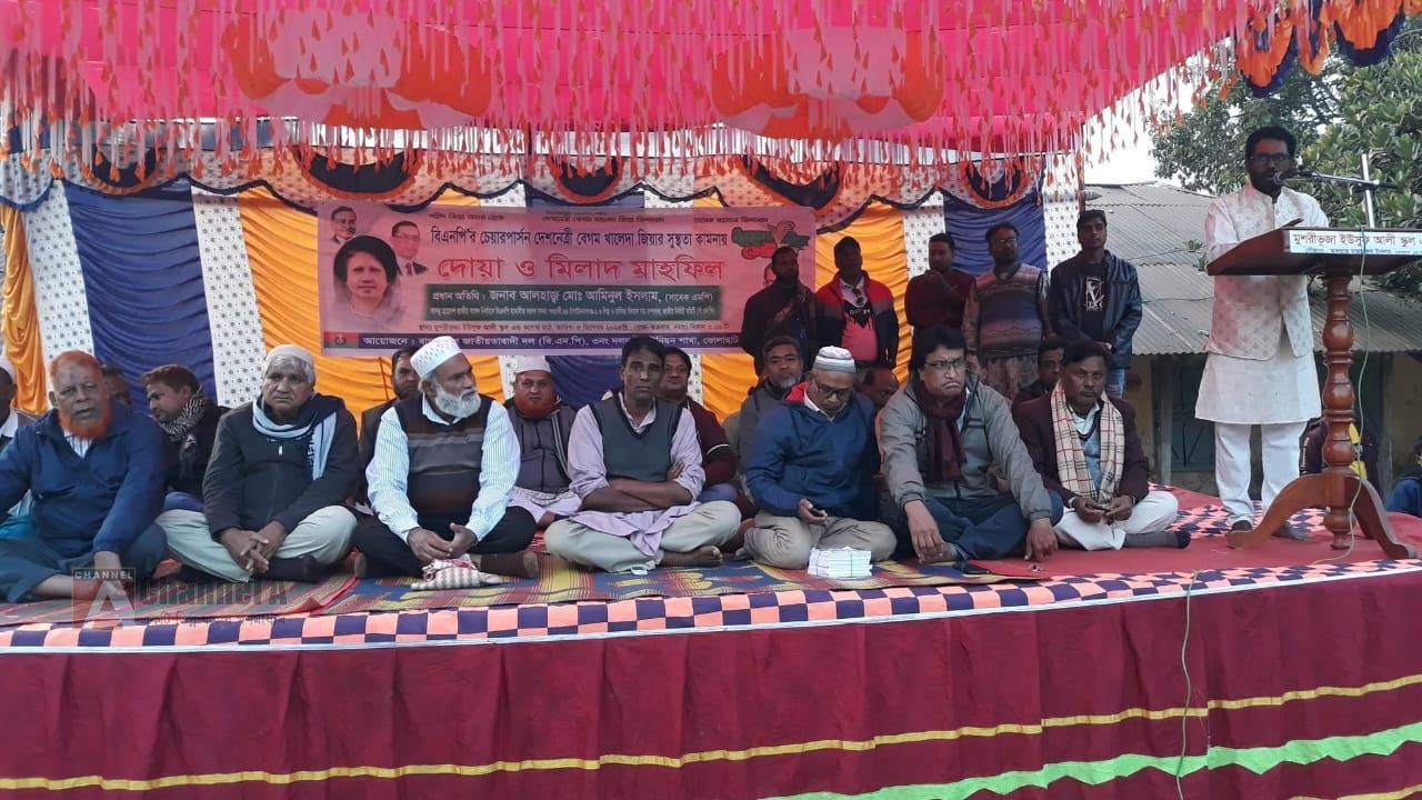চাঁপাইনবাবগঞ্জের ভোলাহাট উপজেলার দলদলী ইউনিয়নের মুশরীভুজা ইউসুফ আলী স্কুল এন্ড কলেজ মাঠে (৫ ডিসেম্বর) শুক্রবার বিকেল ৪:০০ ঘটিকায় বিএনপি'র চেয়ারপার্সন দেশনেত্রী বেগম খালেদা জিয়ার সুস্থতা কামনায় দোয়া ও মিলাদ মাহফিল অনুষ্ঠিত হয়েছে। প্রধান অতিথি হিসেবে উপস্থিত ছিলেন জনাব আলহাজ্ব মোঃ আমিনুল ইসলাম, (সাবেক এমপি)আসন্ন ত্রয়োদশ জাতীয় সংসদ নির্বাচনে বিএনপি মনোনীত সংসদ সদস্য পদপ্রার্থী ৪৪ চাঁপাইনবাবগজ্ঞ--২ শিল্প ও বাণিজ্য বিষয়ক সহ - সম্পাদক, জাতীয় নির্বাহী কমিটি (বিএনপি)। এ সভায় উপস্থিত হয়ে সভাপতিত্ব করেন ভোলাহাট উপজেলা বিএনপির নেতা মোঃ আলাউদ্দিন ঠিকাদার।প্রধান অতিথি উপস্থিত হয়ে বেগম জিয়ার সুস্থতা রোগ মুক্তি ও দোয়া কামনা করে বক্তব্য দেন। এ সভায় আরও উপস্থিত ছিলেন সিনিয়র সাবেক সহ-সভাপতি ও সাবেক ইউপি চেয়ারম্যান জনাব মোঃ মাহাতাব উদ্দিন।