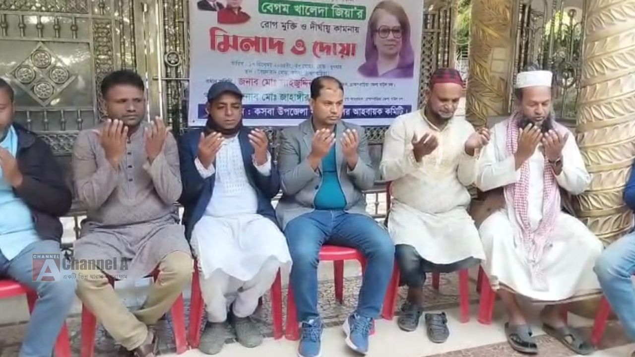 বাংলাদেশের তিন তিন বারের সাবেক প্রধানমন্ত্রী, আপোষহীন নেত্রী, দেশনেত্রী ও দেশমাতা বেগম খালেদা জিয়া’র রোগমুক্তি ও দীর্ঘায়ু কামনায় মিলাদ ও দোয়া মাহফিল অনুষ্ঠিত হয়েছে। আজ ১৭ ডিসেম্বর ২০২৫ ইং, বুধবার, বাদ যোহর ব্রাহ্মণবাড়িয়া জেলার কসবা উপজেলার সৈয়দাবাদ মোড়ে জাহাঙ্গীর আলমের বাড়িতে এ মিলাদ ও দোয়া মাহফিলের আয়োজন করা হয়। অনুষ্ঠানে প্রধান অতিথি হিসেবে উপস্থিত ছিলেন ব্রাহ্মণবাড়িয়া জেলা বাউল দলের আহ্বায়ক জনাব মোঃ সাইজুদ্দিন সাজু।