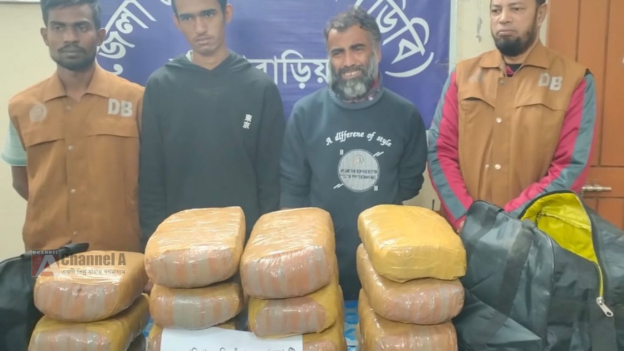 ব্রাহ্মণবাড়িয়া জেলা গোয়েন্দা শাখা (ডিবি) পুলিশের অভিযানে ৩০ কেজি গাঁজাসহ দুই মাদক কারবারিকে গ্রেফতার করা হয়েছে। এ সময় মাদক পরিবহনে ব্যবহৃত একটি সিএনজি অটোরিকশাও জব্দ করা হয়। পুলিশ সূত্র জানায়, আজ শনিবার (২৭ ডিসেম্বর ২০২৫ খ্রি.) দুপুর ১২টা ৫০ মিনিটের দিকে জেলা গোয়েন্দা শাখা (ডিবি) পুলিশ-এর একটি দল গোপন সংবাদের ভিত্তিতে অভিযান পরিচালনা করে। অভিযানে ব্রাহ্মণবাড়িয়া সদর থানা-এর অধীন মাছিহাতা ইউনিয়নের গজারিয়া এলাকা থেকে একটি সিএনজি অটোরিকশা আটক করা হয়। পরে সিএনজিটি তল্লাশি করে ৩০ (ত্রিশ) কেজি গাঁজা উদ্ধার করা হয় এবং ঘটনাস্থল থেকেই দুইজন মাদক কারবারিকে গ্রেফতার করা হয়। উদ্ধারকৃত গাঁজা উপস্থিত সাক্ষীদের সম্মুখে বিধি মোতাবেক জব্দ তালিকা মূলে জব্দ করা হয়েছে। গ্রেফতারকৃত আসামিরা হলেন ১. মো. রাকিব (১৯), পিতা- মো. জাকির হোসেন, মাতা- লুৎফা বেগম, সাং- কাশিনগর, থানা- বিজয়নগর, জেলা- ব্রাহ্মণবাড়িয়া। ২. মো. লোকমান ভূঁইয়া (৪৮), পিতা- মৃত সোলাইমান ভূঁইয়া, মাতা- মৃত চান বানু, সাং- রাধানগর, থানা- আখাউড়া, জেলা- ব্রাহ্মণবাড়িয়া। পুলিশ জানায়, গ্রেফতারকৃত আসামিদ্বয়ের বিরুদ্ধে মাদকদ্রব্য নিয়ন্ত্রণ আইনে আইনগত ব্যবস্থা প্রক্রিয়াধীন রয়েছে। একই সঙ্গে এ চক্রের সঙ্গে জড়িত অন্যান্যদের শনাক্ত ও গ্রেফতারে ডিবি পুলিশের অভিযান অব্যাহত আছে। উল্লেখ্য, ব্রাহ্মণবাড়িয়া জেলায় মাদক নির্মূলে জেলা পুলিশ নিয়মিতভাবে গোয়েন্দা তৎপরতা ও বিশেষ অভিযান পরিচালনা করছে।