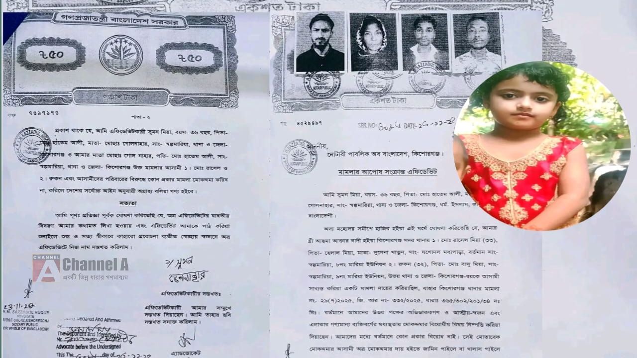 কিশোরগঞ্জ সদর উপজেলার মারিয়া ইউনিয়নের চরমারিয়া গ্রামে নির্মমভাবে খুন হওয়া শিশু রৌজা মনি (৫) হত্যাকাণ্ড নিয়ে নতুন বিতর্কের সৃষ্টি হয়েছে। মামলার আসামিদের সঙ্গে নিহতের পিতা সুমন মিয়া ও দাদি গুলনাহারের গোপন আপসনামা সম্পাদনের খবর ছড়িয়ে পড়লে এলাকায় ব্যাপক চাঞ্চল্যের সৃষ্টি হয়। একদিকে মা লড়ছেন সন্তানের খুনের বিচারের জন্য, অন্যদিকে বাবা ও দাদির এমন ভূমিকা নিয়ে উঠেছে নৈতিক ও আইনি প্রশ্ন।